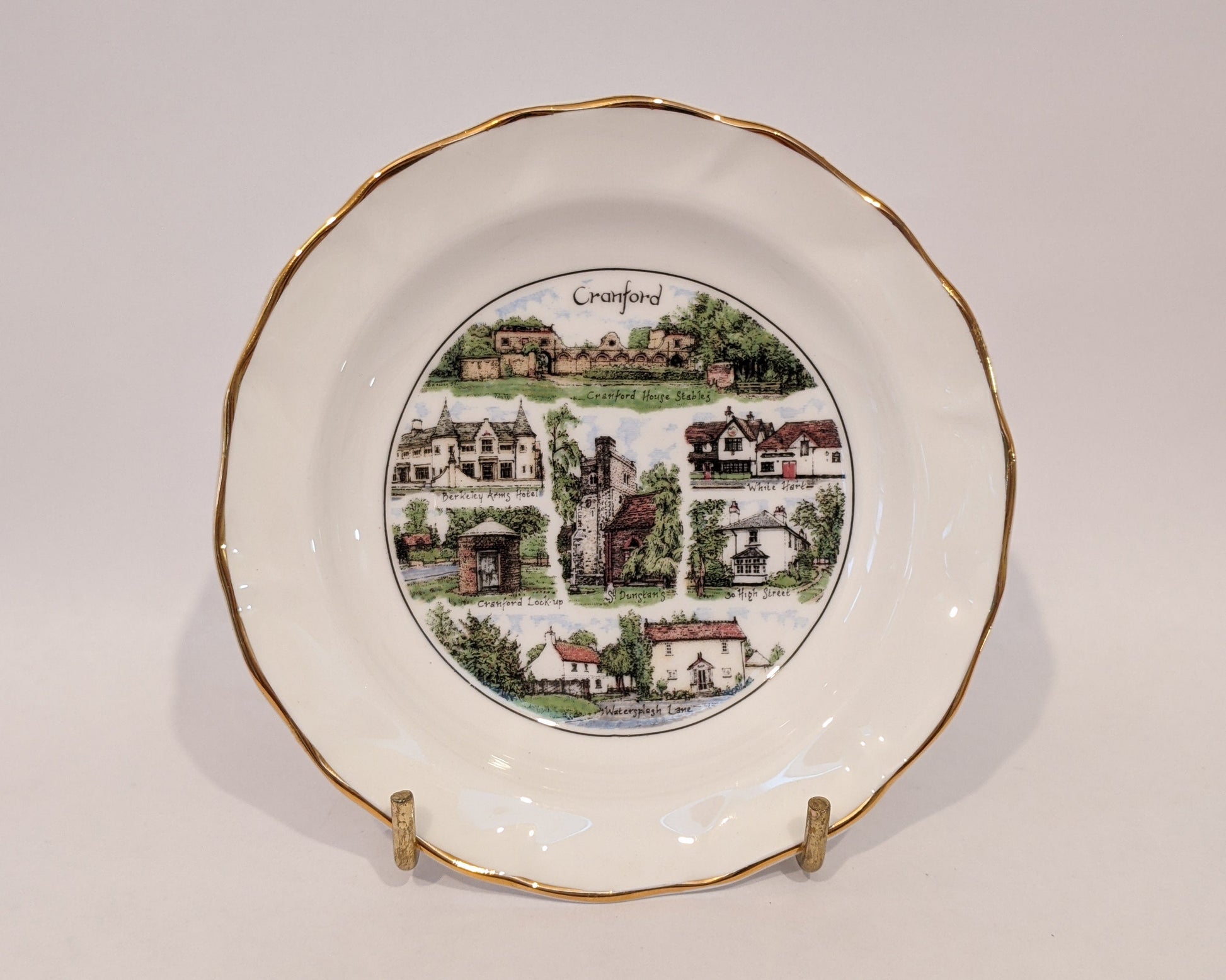 A 4.75" (12cm) Decorative Fine Bone China Miniature, illustrated by local artist Michael Oakes and produced in the Staffordshire Potteries by Edwardian China. Features a hand-gilded 2.4 karat gold rim.
