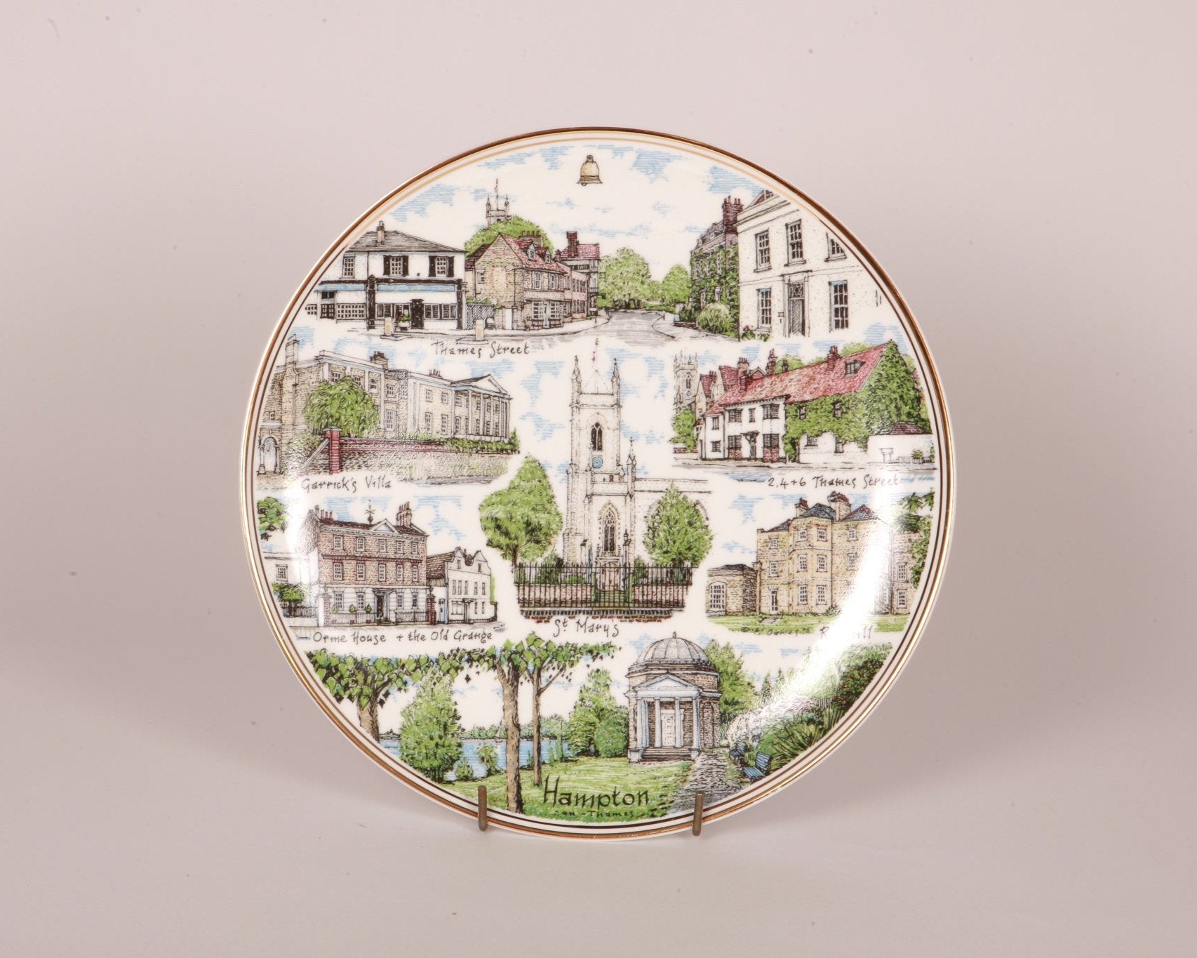 A 10.5" Decorative Fine Bone China plate, illustrated by local artist Michael Oakes and produced in the Staffordshire Potteries by Edwardian China.