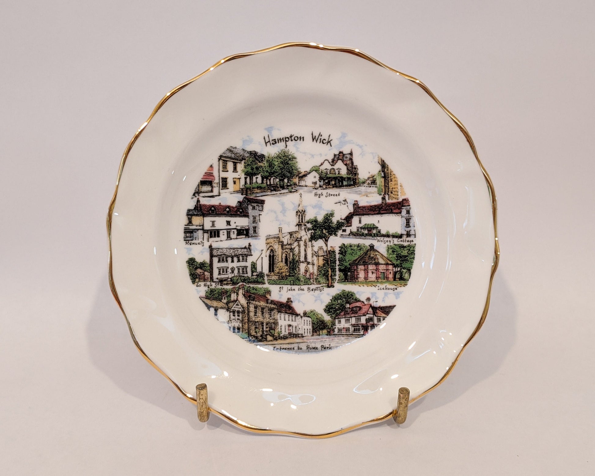 A 4.75" (12cm) Decorative Fine Bone China Miniature, illustrated by local artist Michael Oakes and produced in the Staffordshire Potteries by Edwardian China. Features a hand-gilded 2.4 karat gold rim.